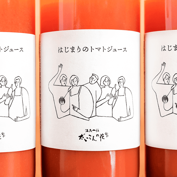 宮城県に位置するお宿「温泉山荘だいこんの花」のトマトジュースの商品開発とラベルデザインを担当しました。